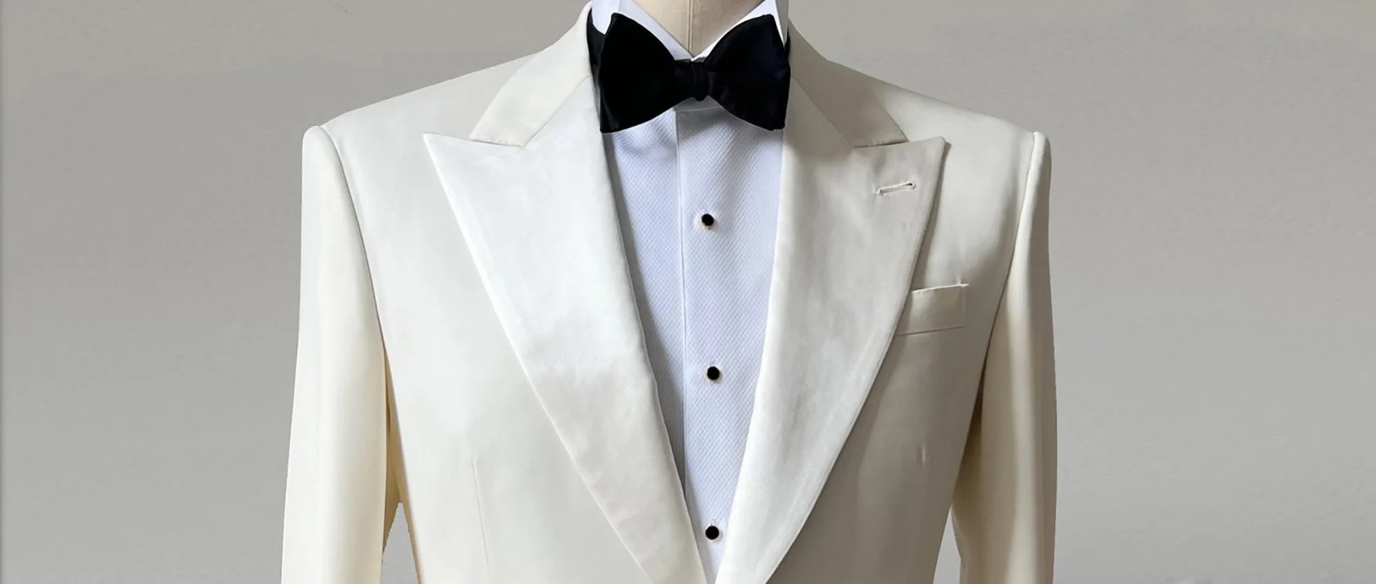 Ideal for summer weddings or outdoor ceremonies in California, custom-tailored suits in San Francisco in beige, cream, or light grey fabrics provide style and comfort.